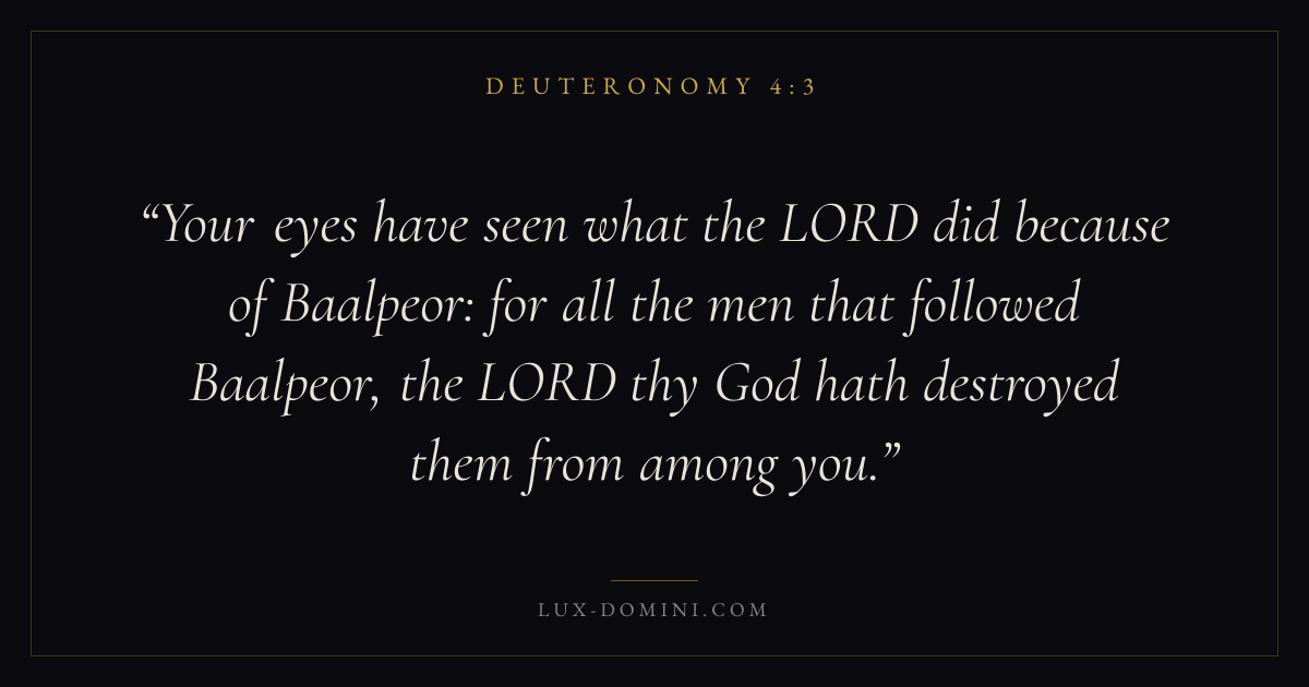 Your eyes have seen what the LORD did because of Baalpeor: for all the men that followed Baalpeor, the LORD thy God hath destroyed them from among you.
