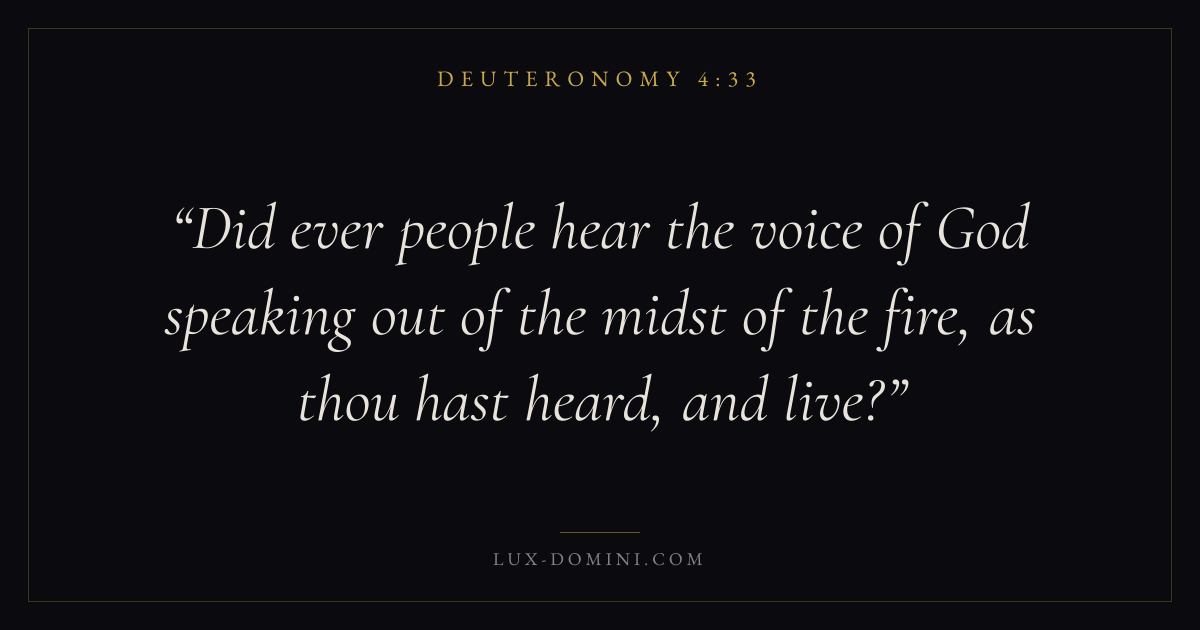 Did ever people hear the voice of God speaking out of the midst of the fire, as thou hast heard, and live?