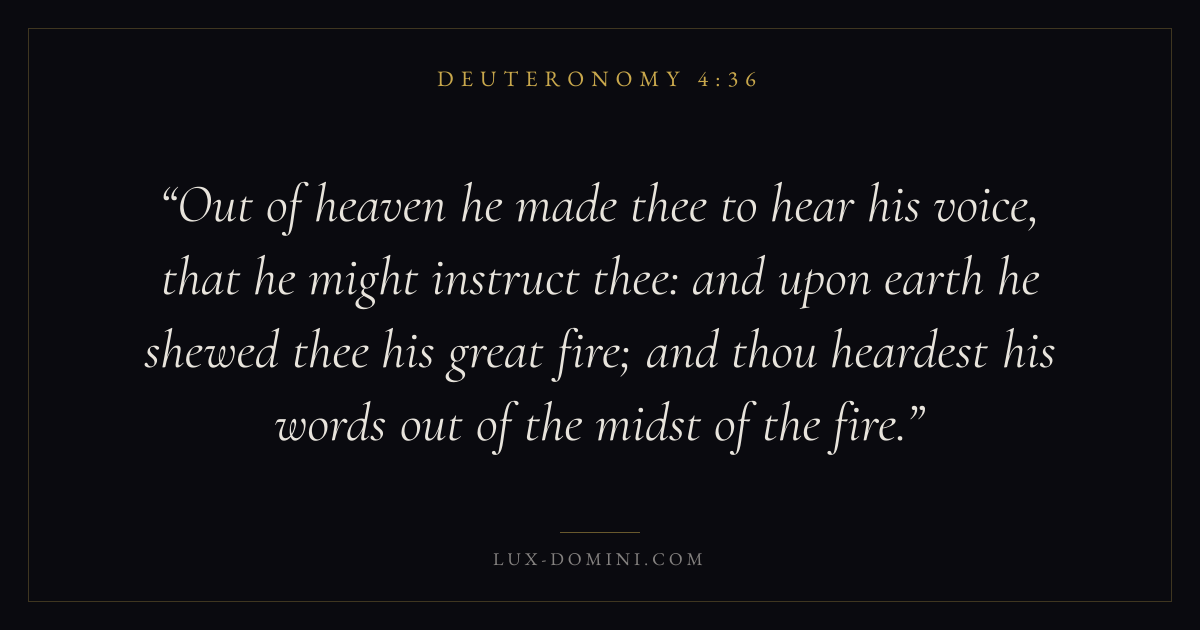 Out of heaven he made thee to hear his voice, that he might instruct thee: and upon earth he shewed thee his great fire; and thou heardest his words out of the midst of the fire.