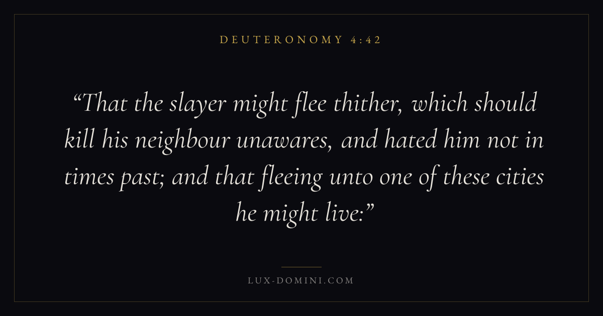 That the slayer might flee thither, which should kill his neighbour unawares, and hated him not in times past; and that fleeing unto one of these cities he might live: