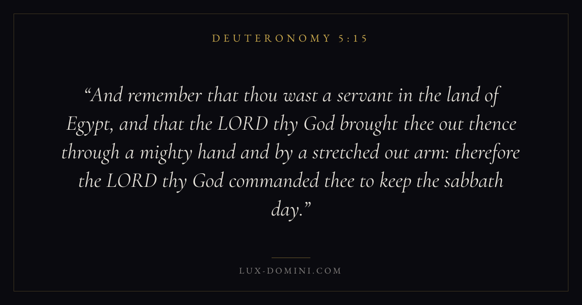 And remember that thou wast a servant in the land of Egypt, and that the LORD thy God brought thee out thence through a mighty hand and by a stretched out arm: therefore the LORD thy God commanded thee to keep the sabbath day.