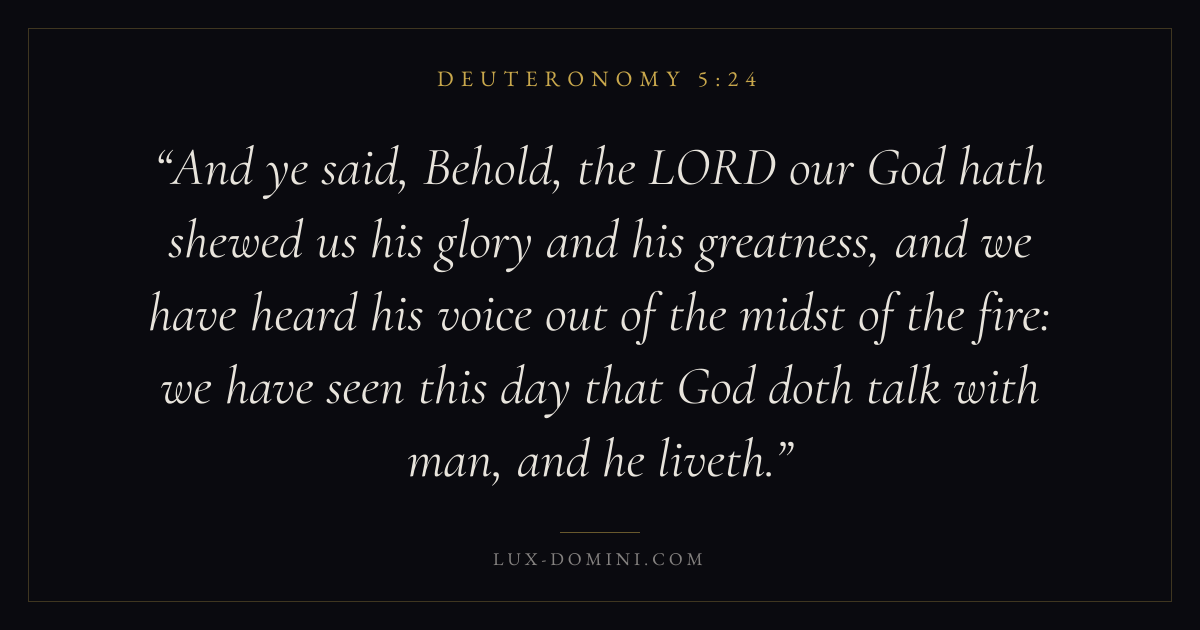 And ye said, Behold, the LORD our God hath shewed us his glory and his greatness, and we have heard his voice out of the midst of the fire: we have seen this day that God doth talk with man, and he liveth.