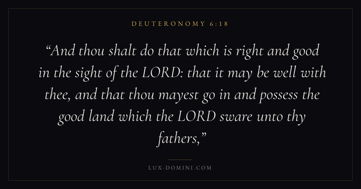 And thou shalt do that which is right and good in the sight of the LORD: that it may be well with thee, and that thou mayest go in and possess the good land which the LORD sware unto thy fathers,
