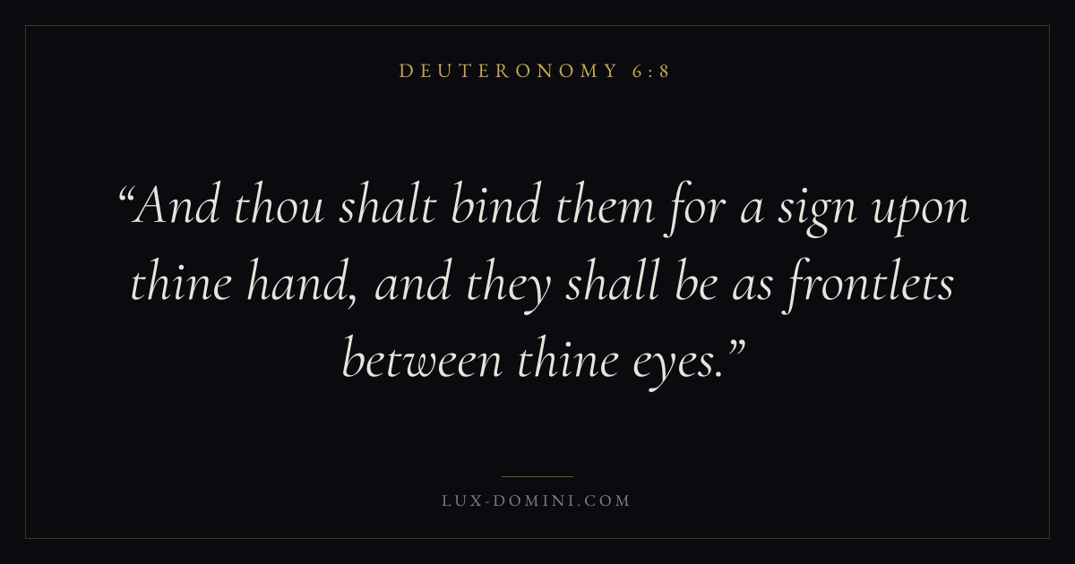And thou shalt bind them for a sign upon thine hand, and they shall be as frontlets between thine eyes.