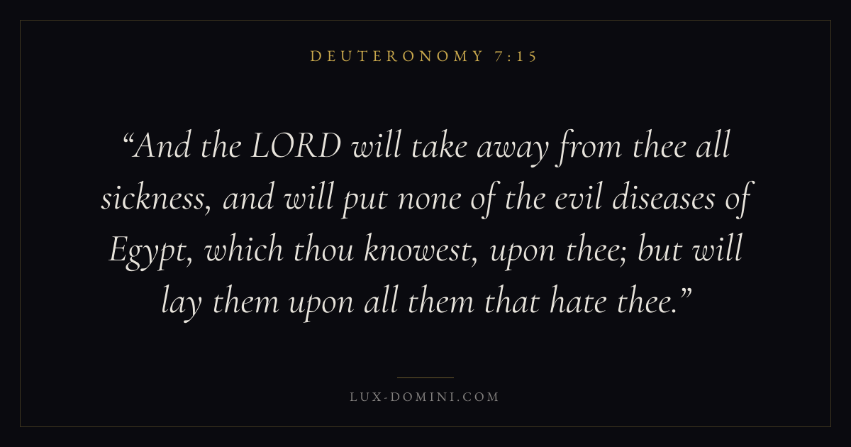 And the LORD will take away from thee all sickness, and will put none of the evil diseases of Egypt, which thou knowest, upon thee; but will lay them upon all them that hate thee.