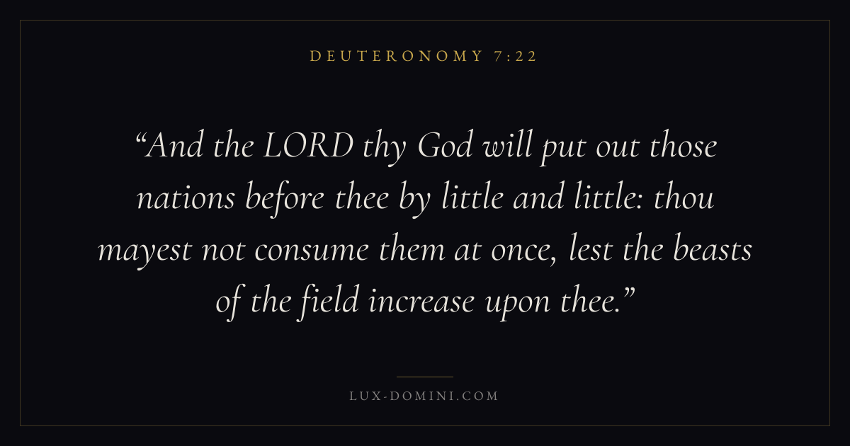 And the LORD thy God will put out those nations before thee by little and little: thou mayest not consume them at once, lest the beasts of the field increase upon thee.