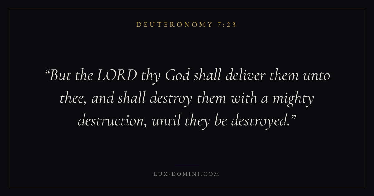 But the LORD thy God shall deliver them unto thee, and shall destroy them with a mighty destruction, until they be destroyed.