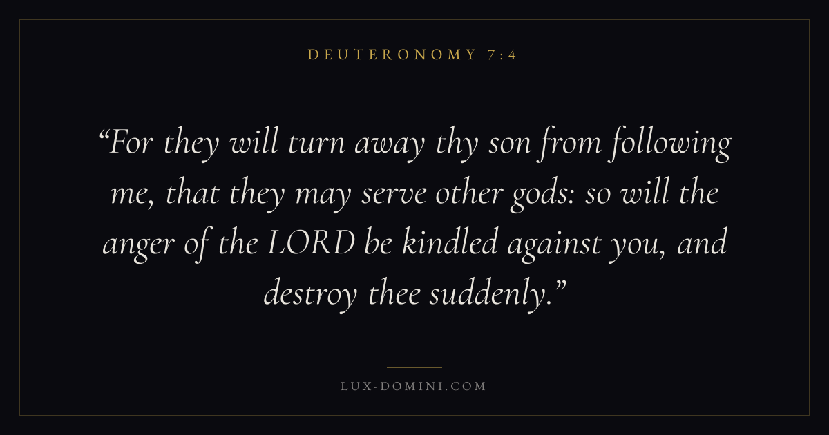 For they will turn away thy son from following me, that they may serve other gods: so will the anger of the LORD be kindled against you, and destroy thee suddenly.