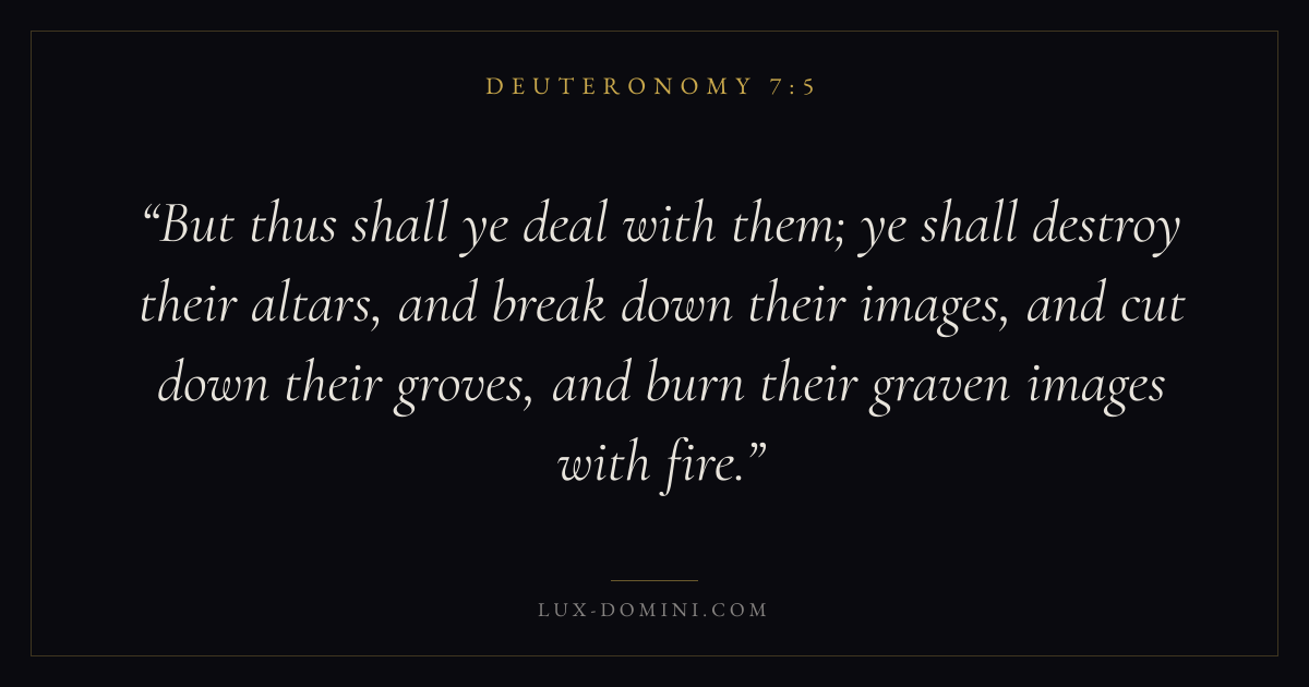 But thus shall ye deal with them; ye shall destroy their altars, and break down their images, and cut down their groves, and burn their graven images with fire.