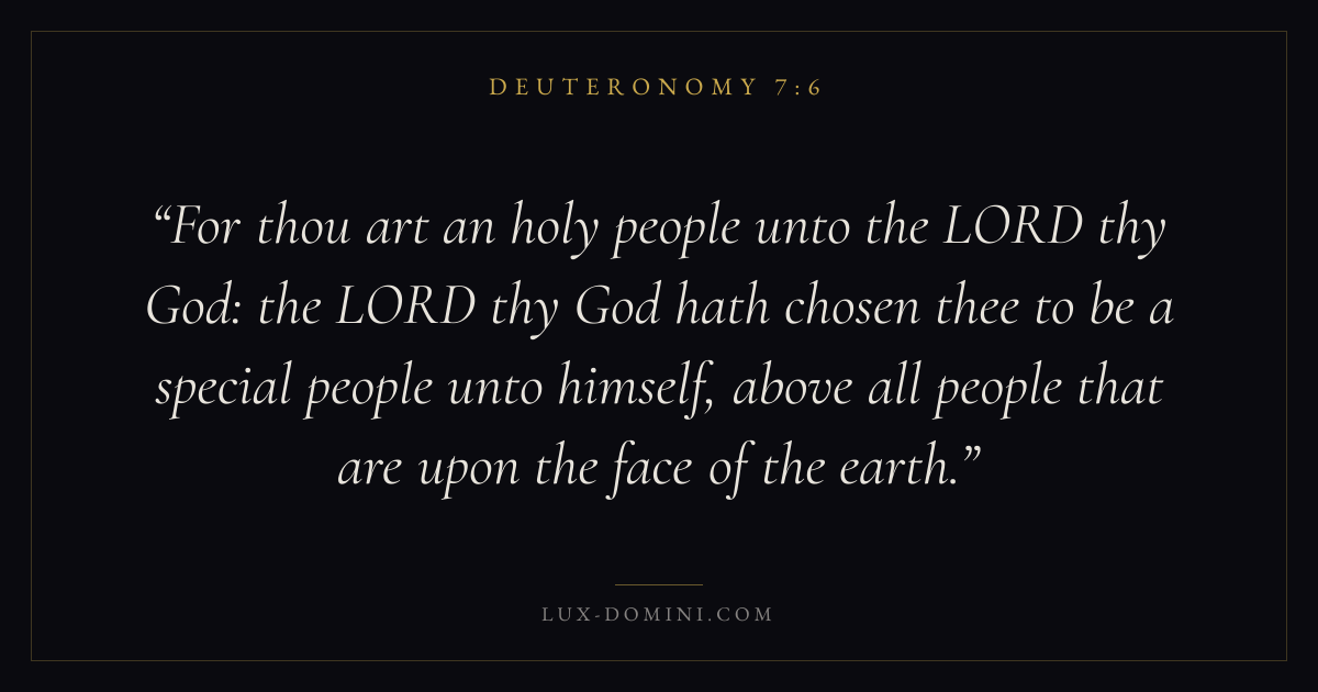 For thou art an holy people unto the LORD thy God: the LORD thy God hath chosen thee to be a special people unto himself, above all people that are upon the face of the earth.