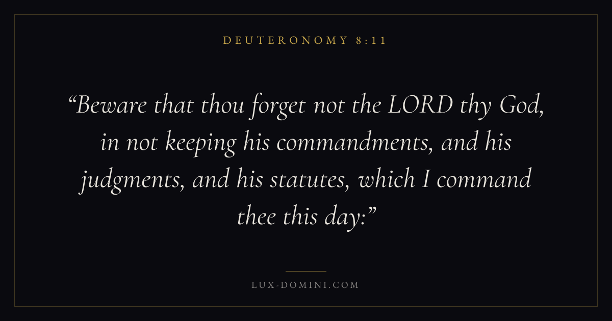 Beware that thou forget not the LORD thy God, in not keeping his commandments, and his judgments, and his statutes, which I command thee this day: