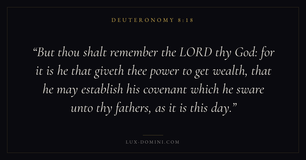 But thou shalt remember the LORD thy God: for it is he that giveth thee power to get wealth, that he may establish his covenant which he sware unto thy fathers, as it is this day.