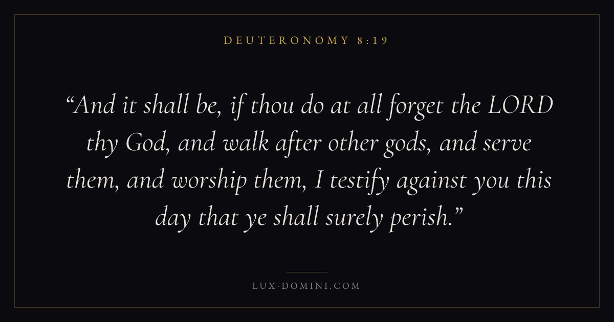 And it shall be, if thou do at all forget the LORD thy God, and walk after other gods, and serve them, and worship them, I testify against you this day that ye shall surely perish.