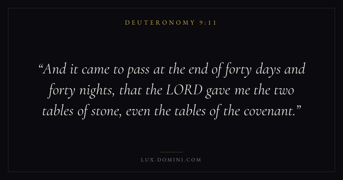 And it came to pass at the end of forty days and forty nights, that the LORD gave me the two tables of stone, even the tables of the covenant.