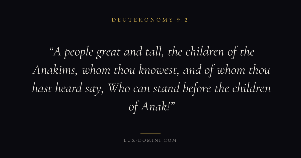 A people great and tall, the children of the Anakims, whom thou knowest, and of whom thou hast heard say, Who can stand before the children of Anak!