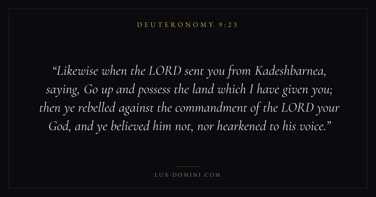 Likewise when the LORD sent you from Kadeshbarnea, saying, Go up and possess the land which I have given you; then ye rebelled against the commandment of the LORD your God, and ye believed him not, nor hearkened to his voice.