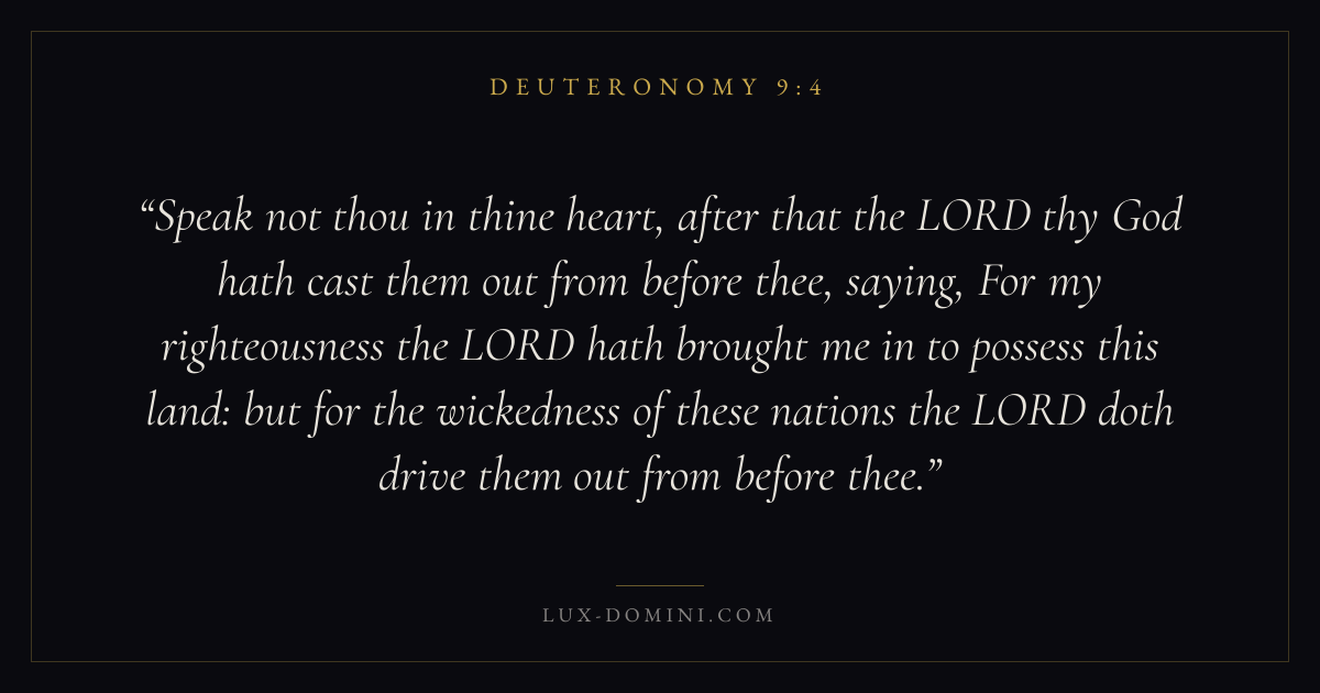 Speak not thou in thine heart, after that the LORD thy God hath cast them out from before thee, saying, For my righteousness the LORD hath brought me in to possess this land: but for the wickedness of these nations the LORD doth drive them out from before thee.