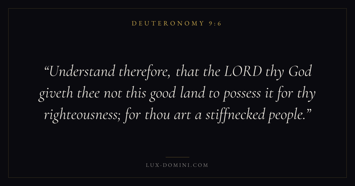 Understand therefore, that the LORD thy God giveth thee not this good land to possess it for thy righteousness; for thou art a stiffnecked people.