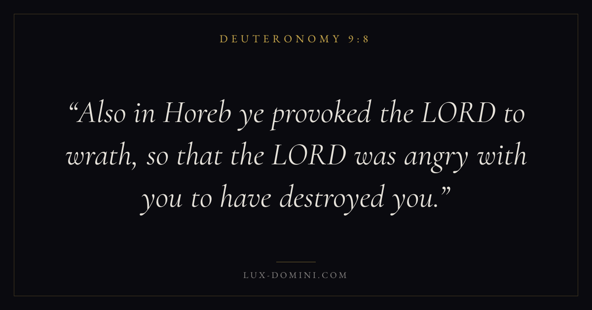 Also in Horeb ye provoked the LORD to wrath, so that the LORD was angry with you to have destroyed you.