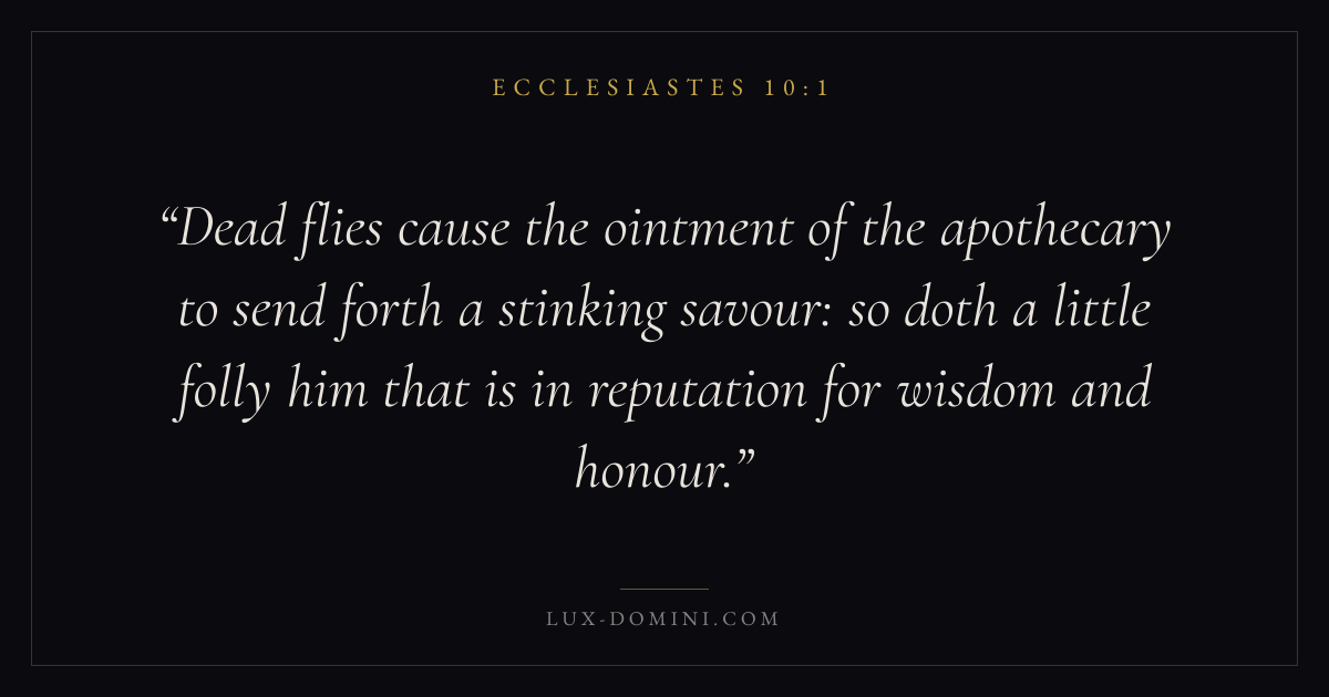 Dead flies cause the ointment of the apothecary to send forth a stinking savour: so doth a little folly him that is in reputation for wisdom and honour.