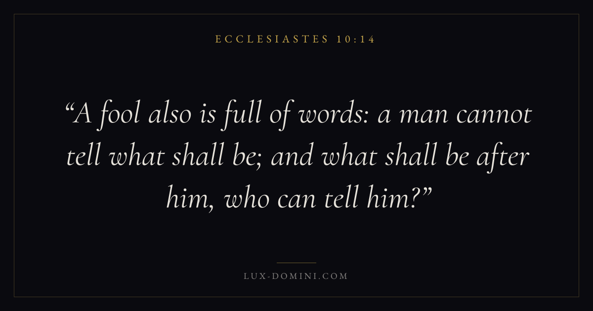A fool also is full of words: a man cannot tell what shall be; and what shall be after him, who can tell him?