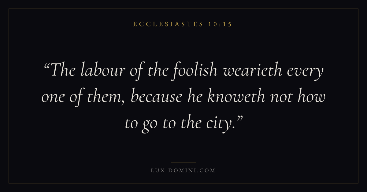The labour of the foolish wearieth every one of them, because he knoweth not how to go to the city.