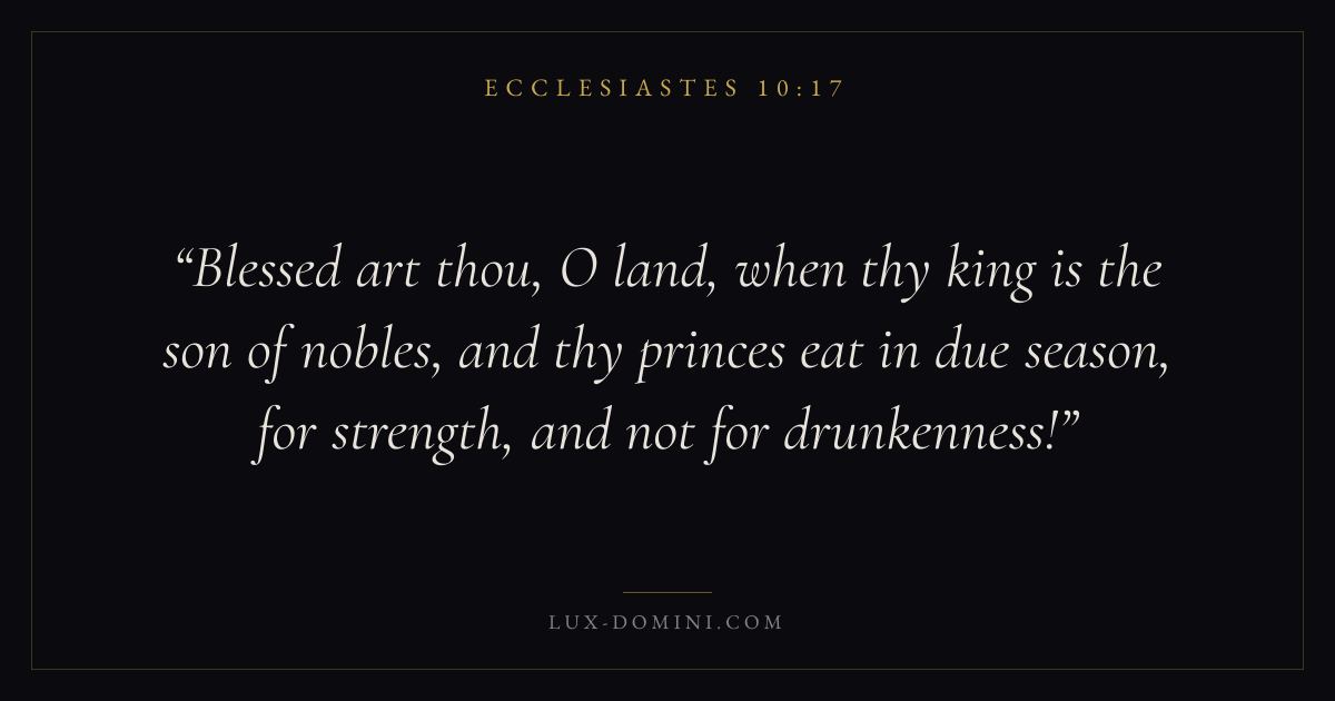 Blessed art thou, O land, when thy king is the son of nobles, and thy princes eat in due season, for strength, and not for drunkenness!