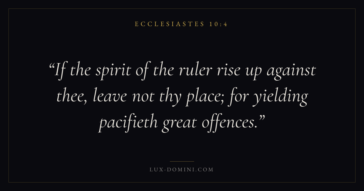 If the spirit of the ruler rise up against thee, leave not thy place; for yielding pacifieth great offences.