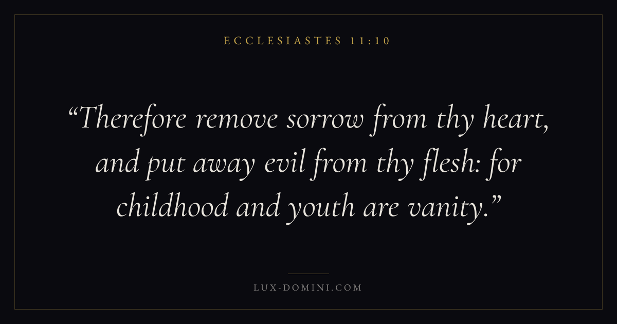 Therefore remove sorrow from thy heart, and put away evil from thy flesh: for childhood and youth are vanity.
