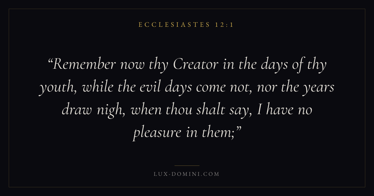 Remember now thy Creator in the days of thy youth, while the evil days come not, nor the years draw nigh, when thou shalt say, I have no pleasure in them;