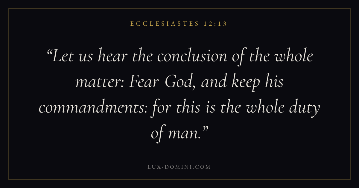 Let us hear the conclusion of the whole matter: Fear God, and keep his commandments: for this is the whole duty of man.
