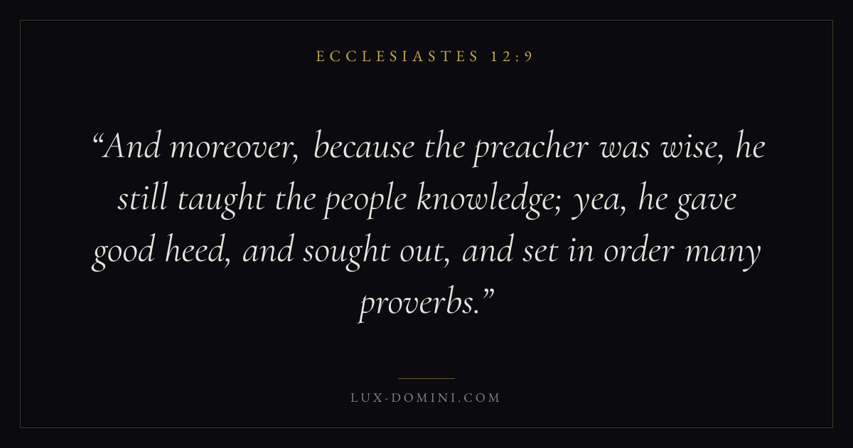 And moreover, because the preacher was wise, he still taught the people knowledge; yea, he gave good heed, and sought out, and set in order many proverbs.