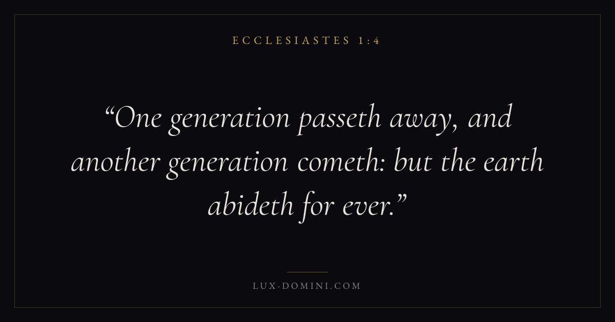 One generation passeth away, and another generation cometh: but the earth abideth for ever.