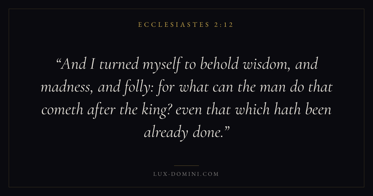And I turned myself to behold wisdom, and madness, and folly: for what can the man do that cometh after the king? even that which hath been already done.