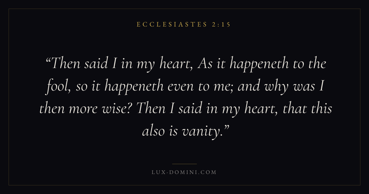 Then said I in my heart, As it happeneth to the fool, so it happeneth even to me; and why was I then more wise? Then I said in my heart, that this also is vanity.