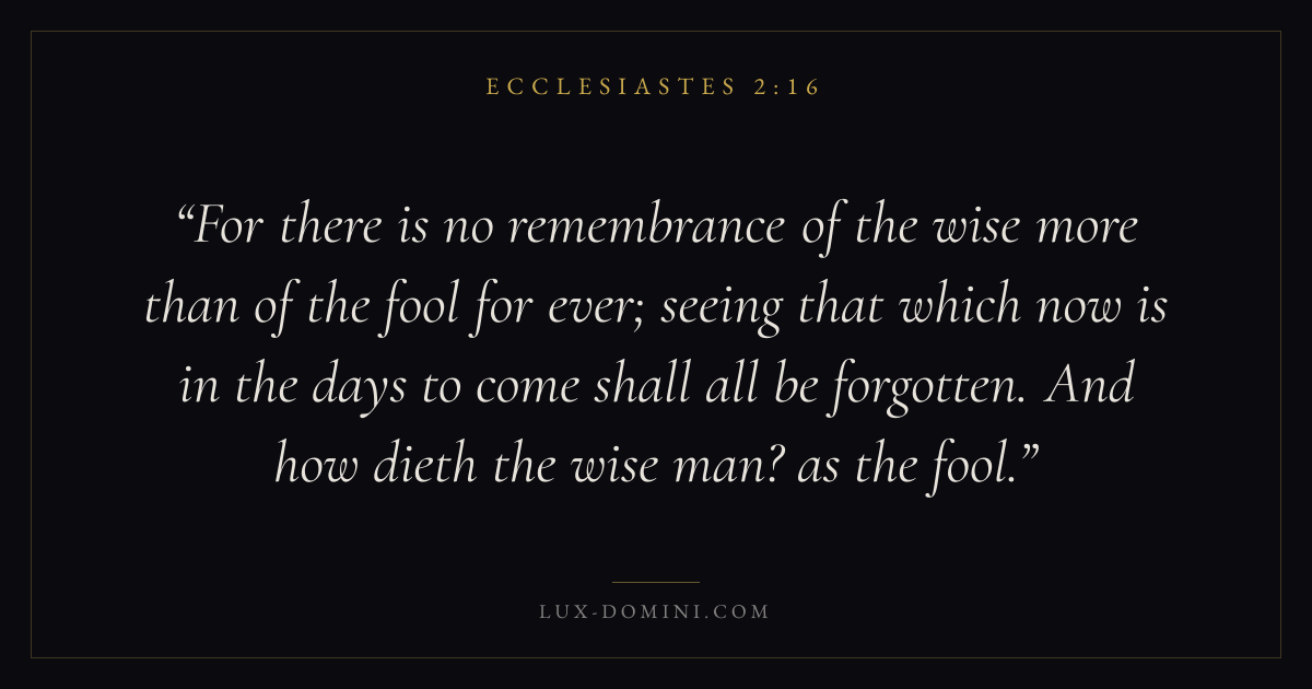 For there is no remembrance of the wise more than of the fool for ever; seeing that which now is in the days to come shall all be forgotten. And how dieth the wise man? as the fool.