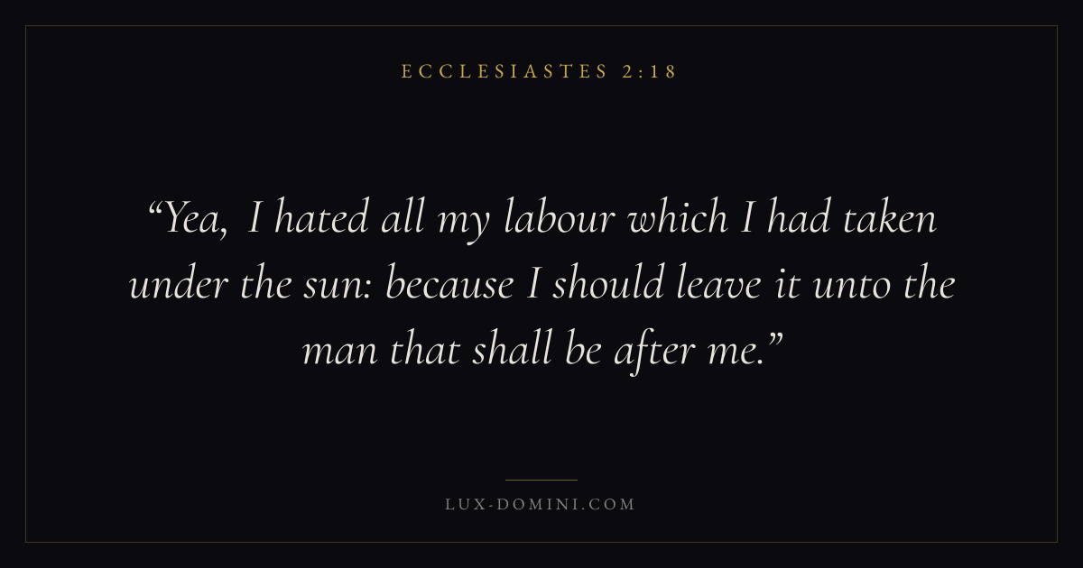 Yea, I hated all my labour which I had taken under the sun: because I should leave it unto the man that shall be after me.