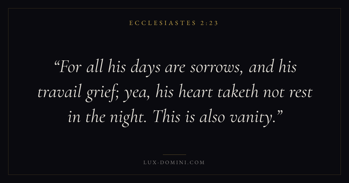 For all his days are sorrows, and his travail grief; yea, his heart taketh not rest in the night. This is also vanity.