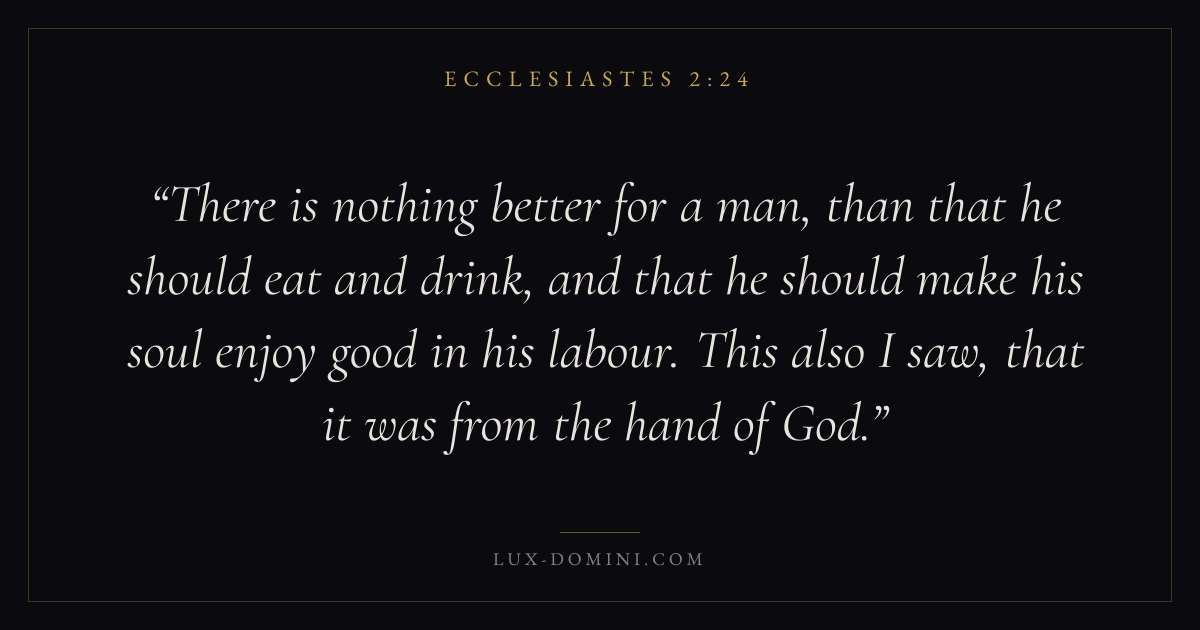 There is nothing better for a man, than that he should eat and drink, and that he should make his soul enjoy good in his labour. This also I saw, that it was from the hand of God.