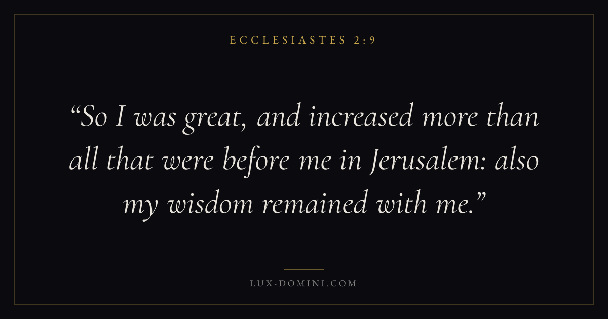 So I was great, and increased more than all that were before me in Jerusalem: also my wisdom remained with me.