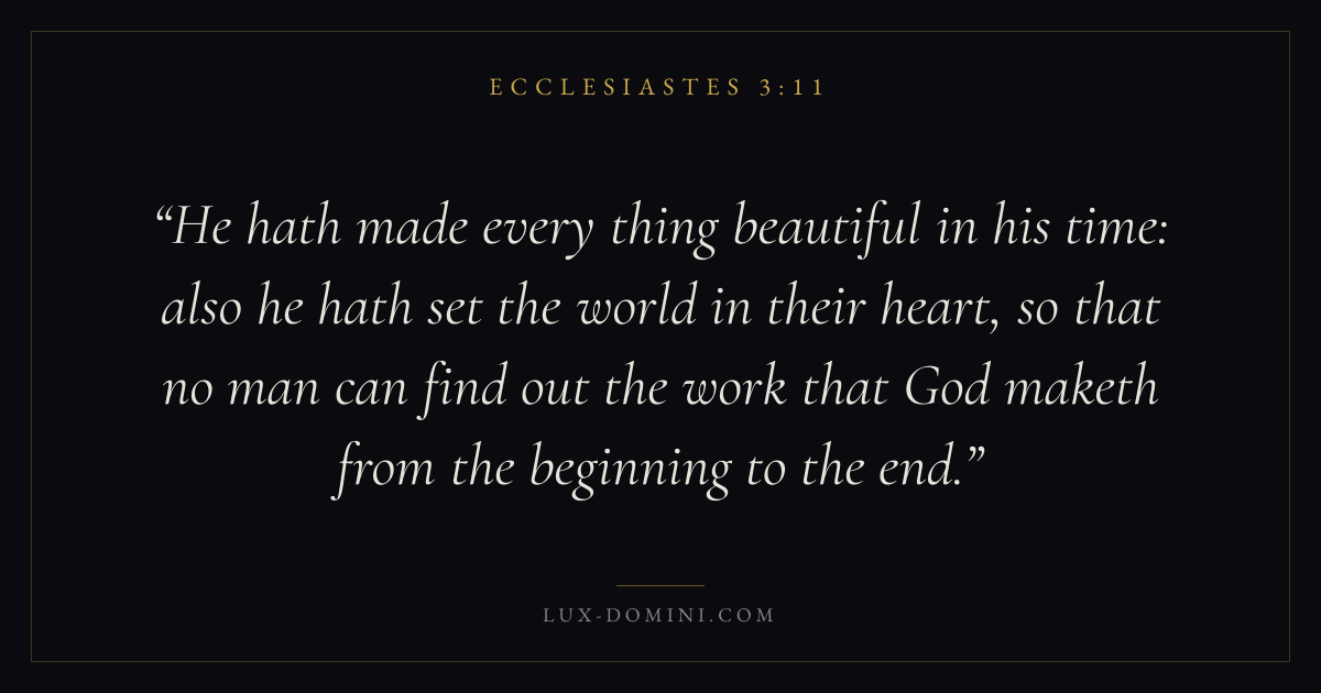 He hath made every thing beautiful in his time: also he hath set the world in their heart, so that no man can find out the work that God maketh from the beginning to the end.