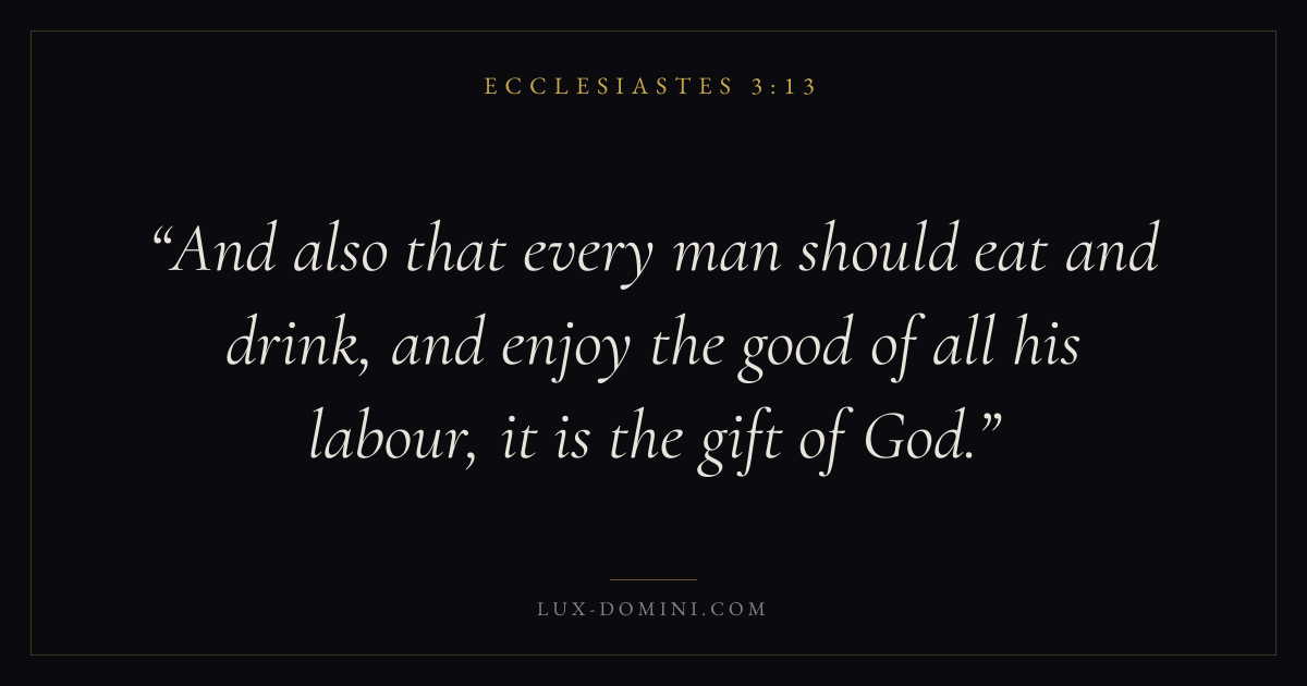 And also that every man should eat and drink, and enjoy the good of all his labour, it is the gift of God.