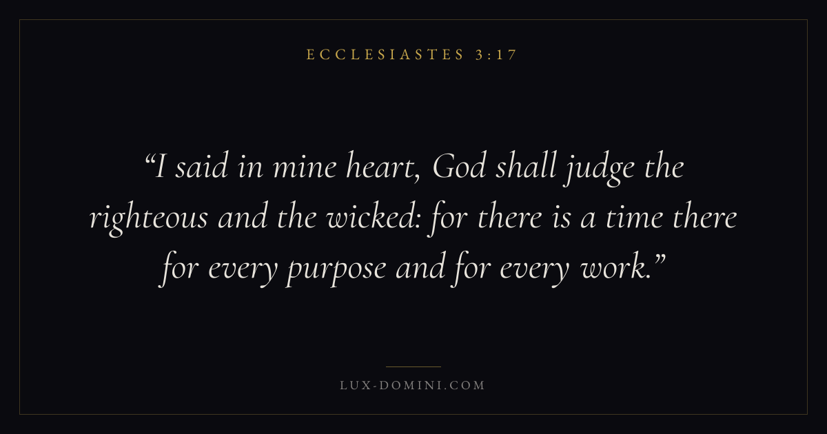 I said in mine heart, God shall judge the righteous and the wicked: for there is a time there for every purpose and for every work.