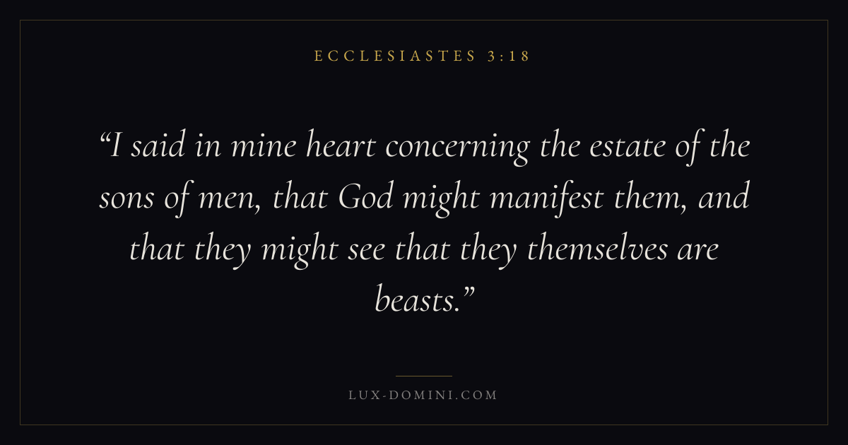 I said in mine heart concerning the estate of the sons of men, that God might manifest them, and that they might see that they themselves are beasts.