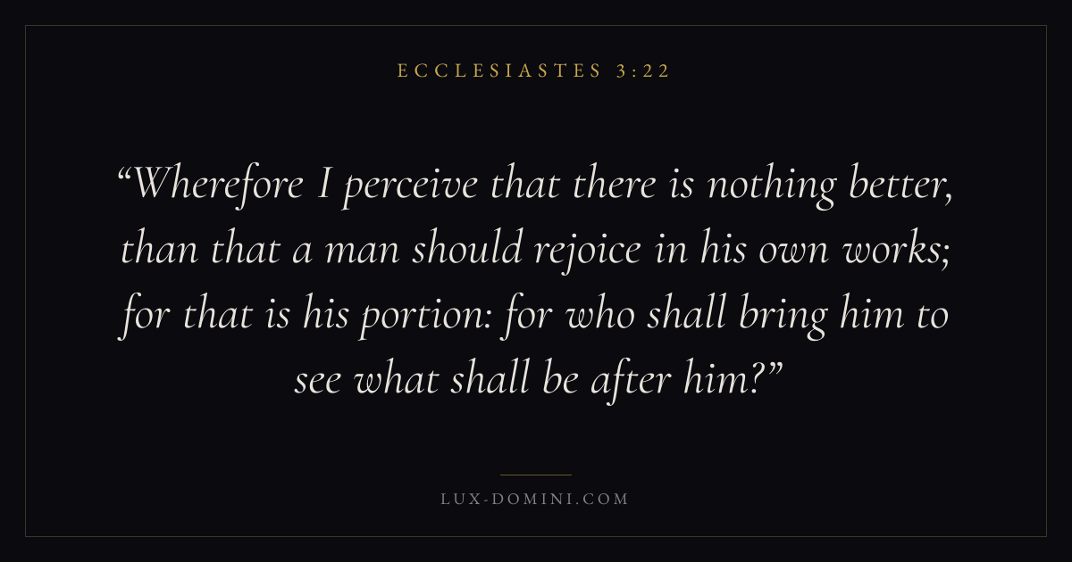 Wherefore I perceive that there is nothing better, than that a man should rejoice in his own works; for that is his portion: for who shall bring him to see what shall be after him?