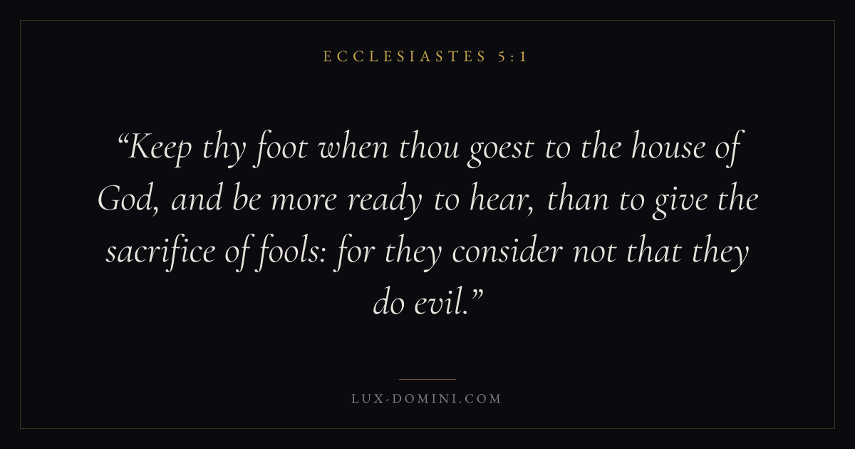 Keep thy foot when thou goest to the house of God, and be more ready to hear, than to give the sacrifice of fools: for they consider not that they do evil.