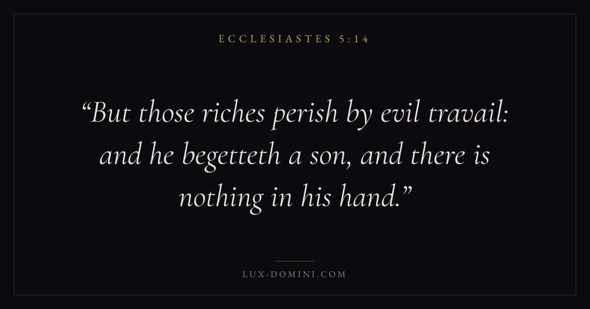 But those riches perish by evil travail: and he begetteth a son, and there is nothing in his hand.