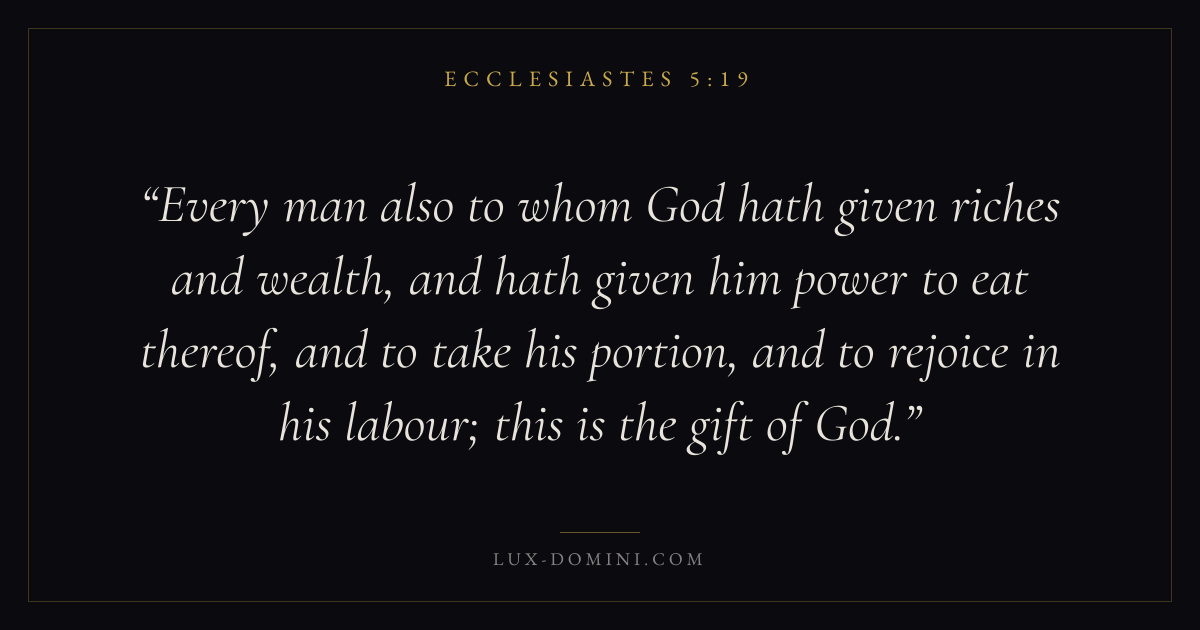 Every man also to whom God hath given riches and wealth, and hath given him power to eat thereof, and to take his portion, and to rejoice in his labour; this is the gift of God.