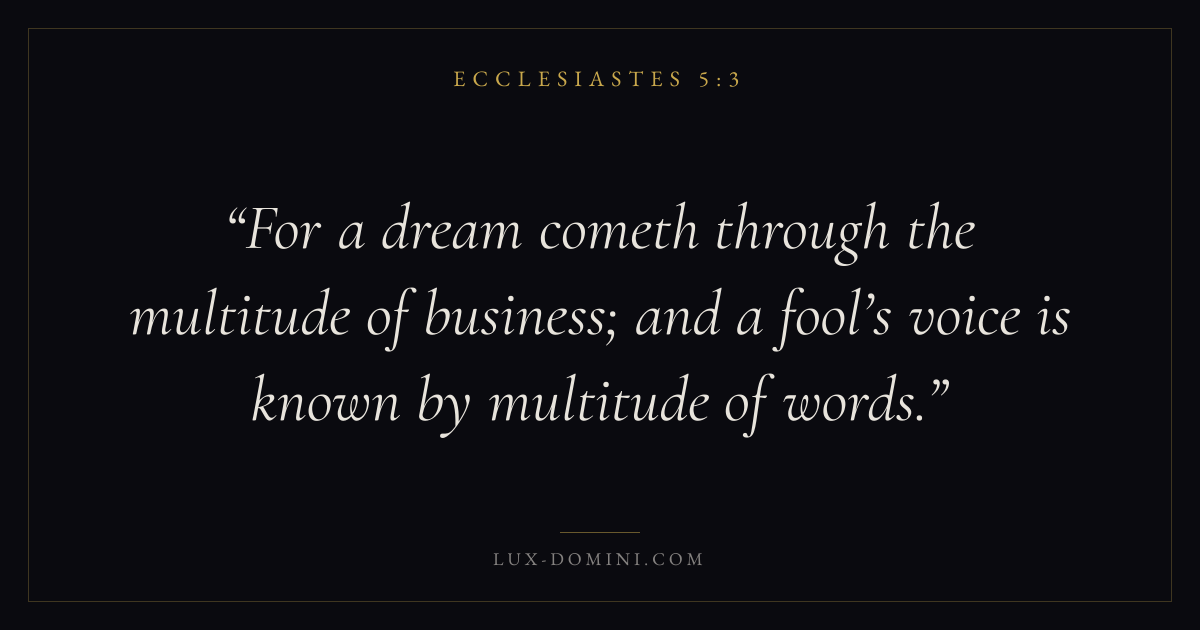 For a dream cometh through the multitude of business; and a fool’s voice is known by multitude of words.