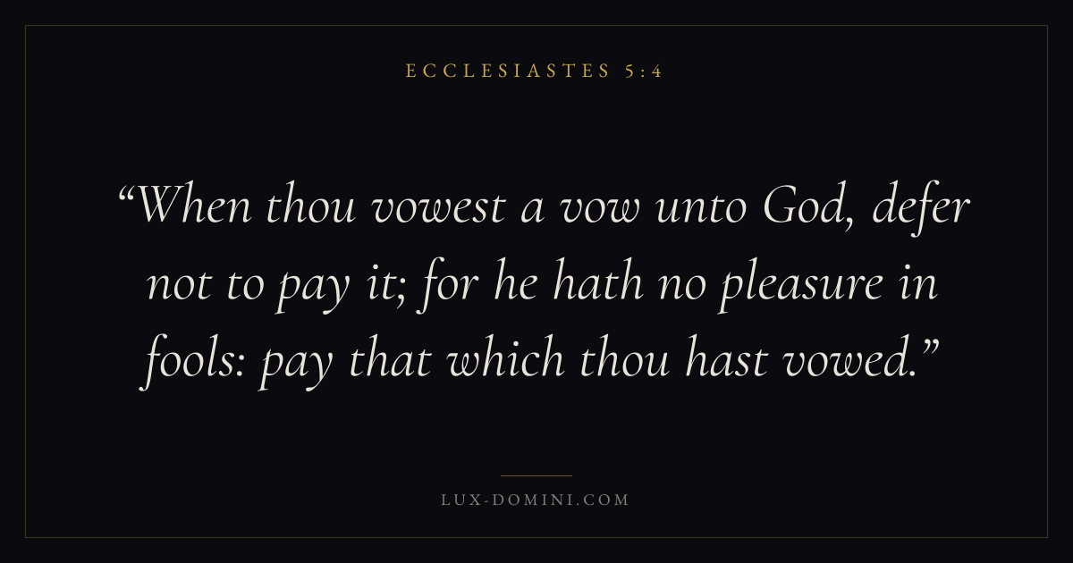 When thou vowest a vow unto God, defer not to pay it; for he hath no pleasure in fools: pay that which thou hast vowed.